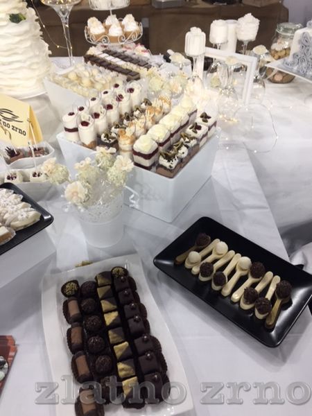 Uz mladenca i mladenku jedan stvar koja se veoma dobra pamti su kolači i torta koji su bili na vjenčanju. Stoga mi imamo cijeli asortiman koji je upotpunjen svim našim artiklima, sve što imamo u ponudi od slastica je ukomponirano. U našoj galeriji možete vidjeti kako to sve izgleda.